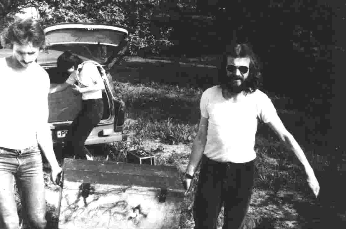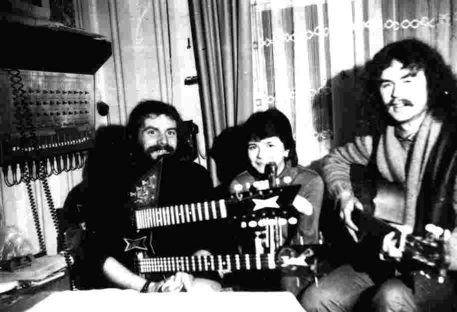 Bild links: Uwe Scherf (g, b, mand), Martina Grütz (fl), Frank "Lampe" Lehmann (g, voc)